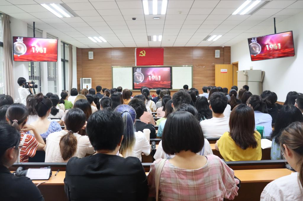 太阳成官网在文汇楼A段102室组织师生党员集体收看大会实况直播。学院领导班子成员、教工党支部书记、全体辅导员、各学生党支部党员代表、学生会及研究生会学生代表到场观看。大会伊始,与会师生齐声合唱《没有共产党就没有新中国》。直播过程中,全体师生端坐静听,认真记录,神情专注。
