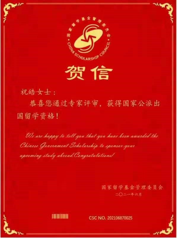 (通讯员:文苑)2021年6月30日,国家留学基金管理委员会发来贺信,我校2018级比较文学硕士研究生祝皓荣获国家公派出国留学资格,前往比利时世界顶尖研究型大学——根特大学(Ghent University)攻读博士学位。祝皓同学在学期间踏实刻苦,努力进取,今年6月,在导师李永平教授的悉心指导下,顺利完成毕业论文 “《佳人奇遇记》的翻译与‘亚洲主义’话语的建构”,获得硕士学位。