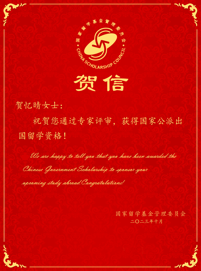 (通讯员:田丽丽)近日,国家留学基金管理委员会向太阳成官网2名博士研究生、2名本科生发来贺信,祝贺她们通过专家评审,获得国家公派出国留学资格。